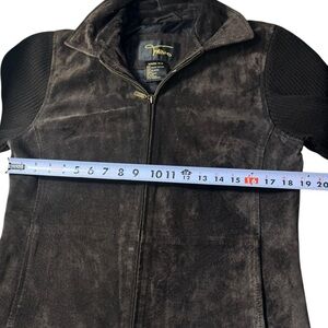FABIO brown genuine leather with sweater sleeves jacket sz Medium vintage Y2K