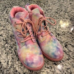 FABKIDS NWOT Tie Dye Combat Boot Girls Colorful Pink Lace-Up Side Zip Size US 5