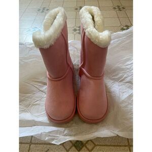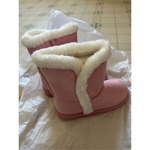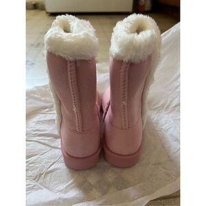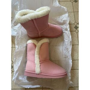 These adorable Ugg “style”(not brand)slip on boots are a pretty blush pink and are fully lined with faux fur for warmth and comfort. Non slip bottom.