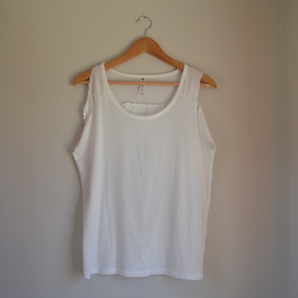 Fabletics activewear top. Size Medium. Sleeves cut off for muscle shirt vibe. Opening in back.
