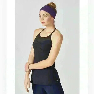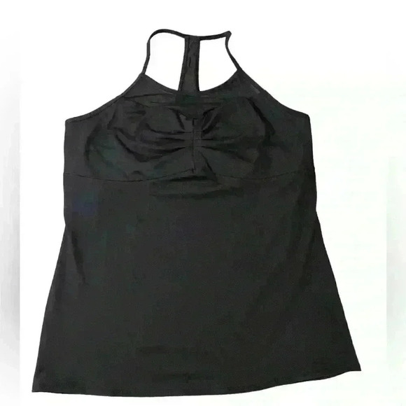 This pretty little performance tank with flattering tucked details at the bust also packs in the technology with moisture-control features, power mesh inserts and a built-in shelf bra.