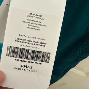 FABLETICS Adra Tank Teal Moisture Wicking Mesh Jacquard XL 12-14 NWT