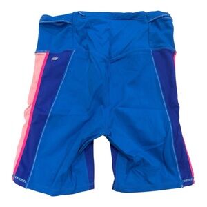 FABLETICS Blue Athletic Shorts with Pink and White Stripes