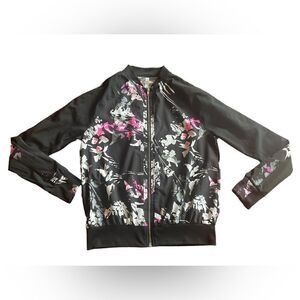 FABLETICS Bomber Jacket Black & Pink Floral Full Zip Jacket Women’s Size XS.