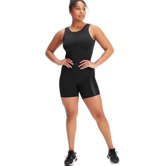FABLETICS Brianna Shortsie Jumpsuit Sz S Black Sleeveless Open Back Athleticwear