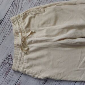 Beautiful creamy yellow joggers! Tapered leg, drawstring waist, pockets in front, single pocket in back. Excellent condition! (T)