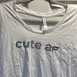 Gently worn Fabletics Cute AF White Oversized Tank Top womens size M. White performance cotton material, drop arm holes, cute af print across chest, loose, oversized fit. Open to offers!