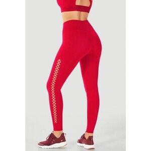 FABLETICS High-Waisted SculptKnit Lattice Legging M Persimmon Red Lasercut B81