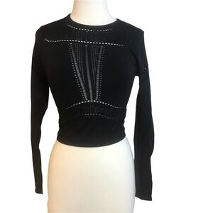 FABLETICS Jaymee Black Seamless Long-Sleeve Perforated Crop Top Size Medium EUC