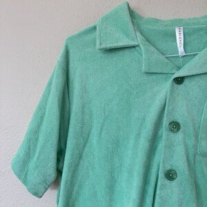 FABLETICS Mint Green Island Terry Boxy Button Up Size Large NWT Tropical Water