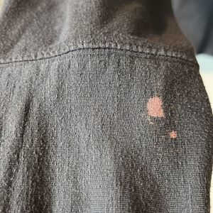 Super comfortable dark gray sweatshirt. Has more bleach stain on the left wrist but otherwise in good condition. Mild pilling.
