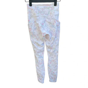 Pre owned like new condition. No flaws or signs of wear. Adorable white leggings with tie dye print and side pockets on both legs. Size tag has been removed but these definitely seem like an xs.