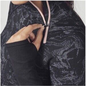 FABLETICS Seamless Zip Neck Black Marble Jacquard Stretch LS Active Top Size M