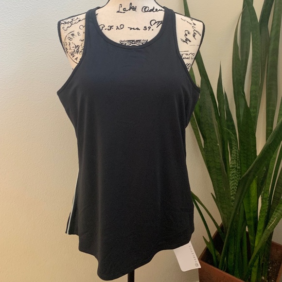 Fabletics Neve Reflective trim tank great for running the trails or hitting the sidewalks. Reflective trim and comfy fit in a black neutral to go with anything.
