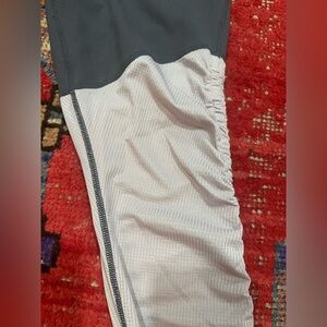 Cleaning out my workout stuff. Worn once, perfect condition. Color is a dark grey and bottom legs are a very light purple.