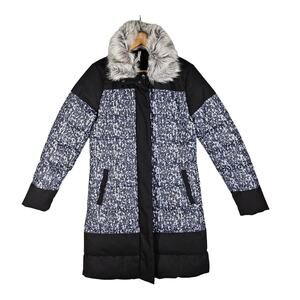 FABLETICS WOMEN’S WACO PUFFER JACKET SIZE SMALL • GRAY CAMO / BLACK • FAUX FUR