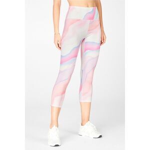 FABLETICS Women’s Pink Purple Swirly Spectrum Define High-Waisted Crop Powerhold Legging Size Large