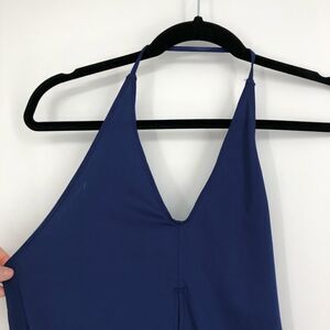 Fabletics slit front halter tank top in navy blue. Size womens Small.