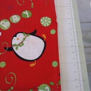 FABRIC Christmas Penguins on Red Background 1 Yard 44 x 36 Cotton