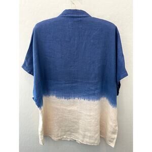 FABULOUS! | 100% Linen Blue Tan Ombre Beach Oversized Button Down Shirt | XL