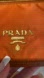 One ample main compartment with one gold zipper pocket and Prada logo plack