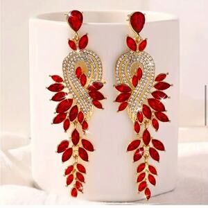 FABULOUS Rhinestones Decor Red Gold Dangle Earrings Earrings
