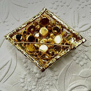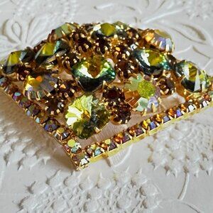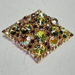 FABULOUS Vintage Juliana Style Domed Brooch in Beautiful Greens and Ambar with square Rivoli stones, Rare. This pin is gorgeous, I tried to capture the beauty of it, but the pictures do not do it justice. In Excellent Vintage Condition.