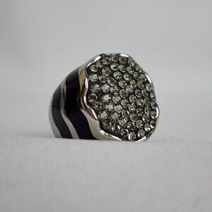 FAC Black&Silver Rhinestone Studded Ring Size 7