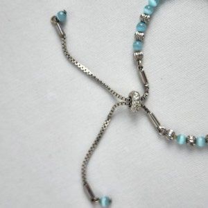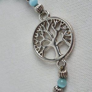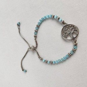 FAC Tree Of Life Blue Beaded Silver Tone Adjustable Bracelet
