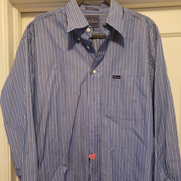 Preowned button down shirt. It was my shirt. It has been dry cleaned and had been boxed up while I moved. Sorry for the few wrinkles but the shirt is in mint condition