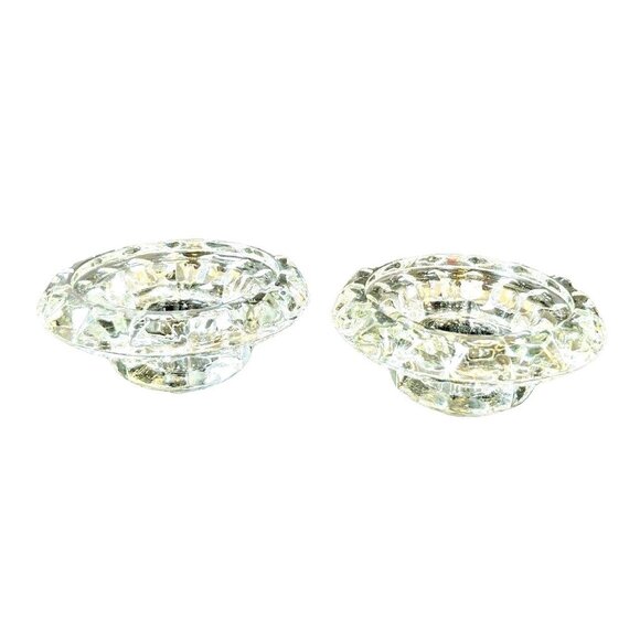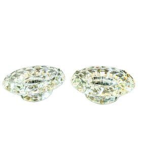 FACETED CRYSTAL ROUND PAIR OF VOTIVE OR TEA CANDLE HOLDERS 63h