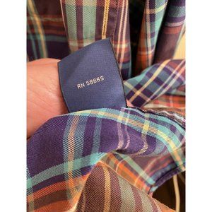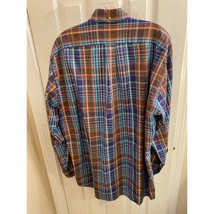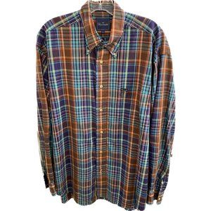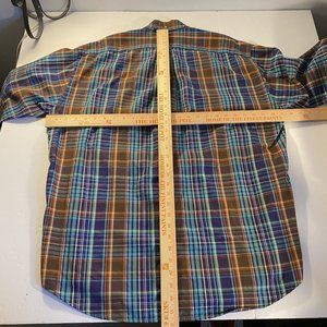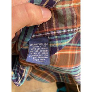 FACONNABLE 100% COTTON MEN’S LARGE SPORT SHIRT ORANGE, Blue PLAID.