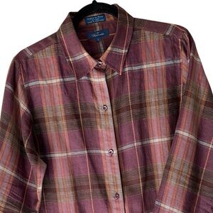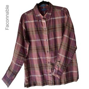 FACONNABLE | PURE LINEN TUNIC SHIRT PLAID LONG SLEEVE BUTTON FRONT PLUM | LARGE