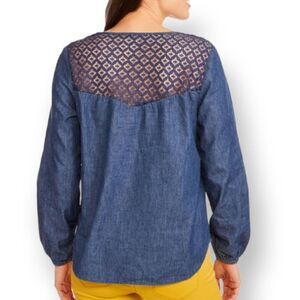 FADDED GLORY DENIM BLUE LACE UP PEASANT TOP SZ.S EUC. GORGEOUS TOP IN EXCELLENT USED CONDITION LIKE NEW.