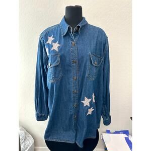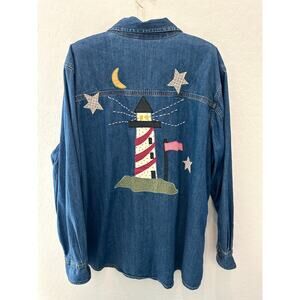 FADED GLORY | Denim Shirt Lighthouse & Star Appliqué Coastal Americana!