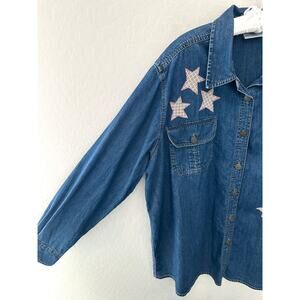 FADED GLORY | Denim Shirt Lighthouse & Star Appliqué Coastal Americana | 22W/24W