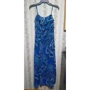*FADED GLORY* Fully Lined Long Blue Dress Size ((S 4-6)) 100% Polyester Floral.