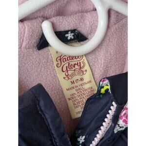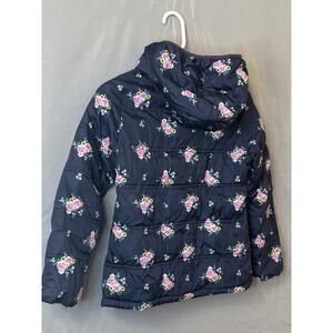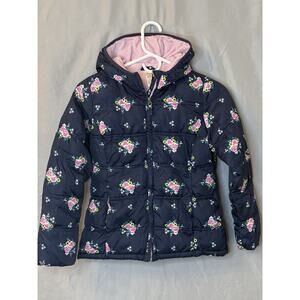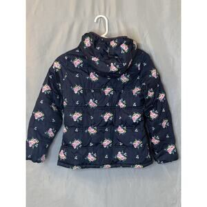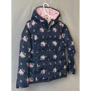 FADED GLORY GIRLS NAVY BLUE WITH FLORAL DESIGN HOODED JACKET M (7-8)