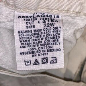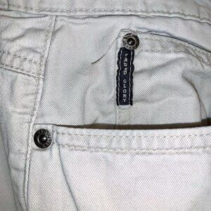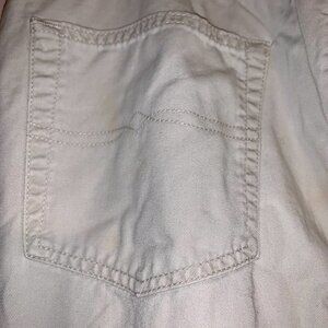Gently used khaki colored jeans, comfortable yet can be dressed up with a blouse and heels or casual with tee shirt and booties/tennis shoes.