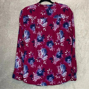 Faded Glory XXL Top Shirt Burgundy Floral Long Sleeve Button Up Casual P19