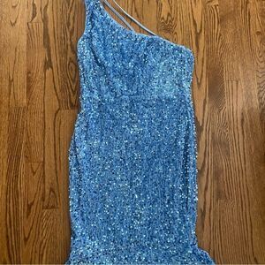 Absolutely gorgeous sequin dress in like-condition. Fabric has a lot of stretch and is very soft (seems to have a touch of velour). Rear zipper, mermaid body and one shoulder design with a lightly-“wired” hem that stands perfectly. Perfect condition. Size XL.