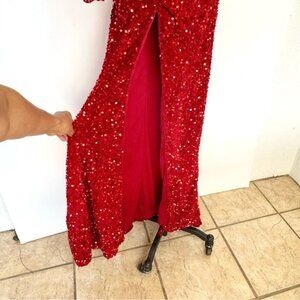 FAERIESTY red Sweetheart Neck Split Thigh Sequin Formal Dress XSmall