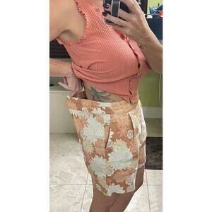 FAHERTY 100% linen NWOT shorts small high waisted warm jicard island