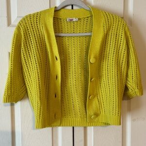 A vibrant pop of color is just the thing you need as the weather gets warmer. Layer on this cropped, puff sleeve cardigan with a lofty open knit stitch to add a dose of fun and character to any outfit.