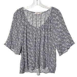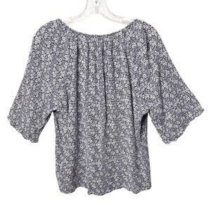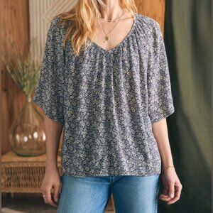 FAHERTY Amira Top In Navy Ditsy Floral Women's Size L Pullover Flutter Sleeve