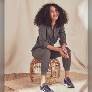 FAHERTY Arlie Day Button Up Linen Blend Jumpsuit In Surplus Green Size M