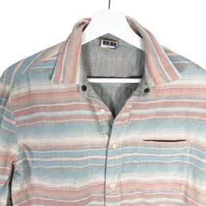 FAHERTY Belmar Shirt Small Button Front Reversible Striped Blue Pink Gray