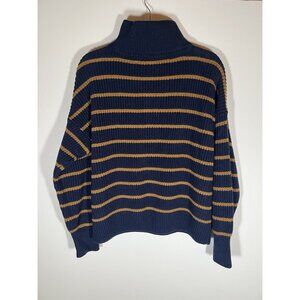 FAHERTY Blue Gold Mariner Stripe quarter zip sweater preppy cotton blend Large