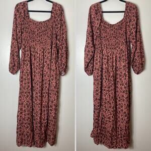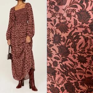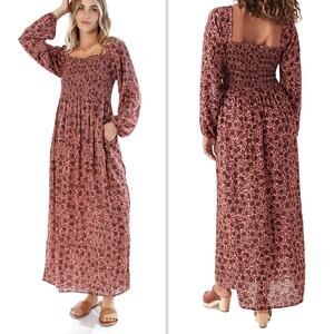 FAHERTY DRESS SUSANNA MAXI SALMON PINK BROWN FLORAL MILKMAID FALL AUTUMN