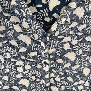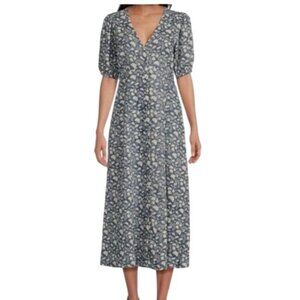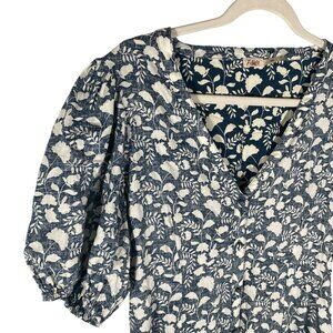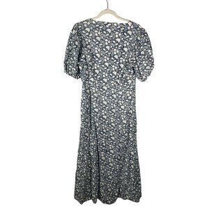 FAHERTY Havana Prairie puff sleeve Linen midi Dress size M Indigo Echo Floral